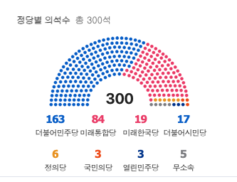 22대 국회의원 총 의석수(지역구 국회의원+비례대표 포함)입니다.