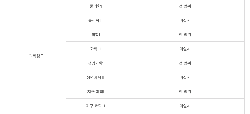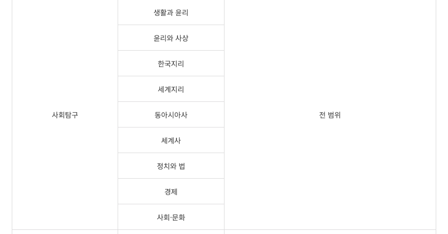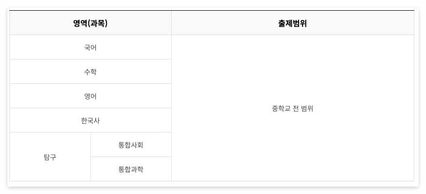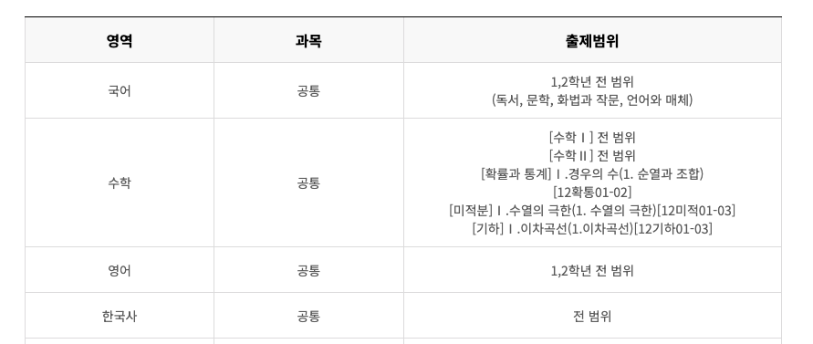 - 시험영역 : 고 1(전 과목), 고 2(국,수,영,사,과), 고 3(국,수,영,사,과)